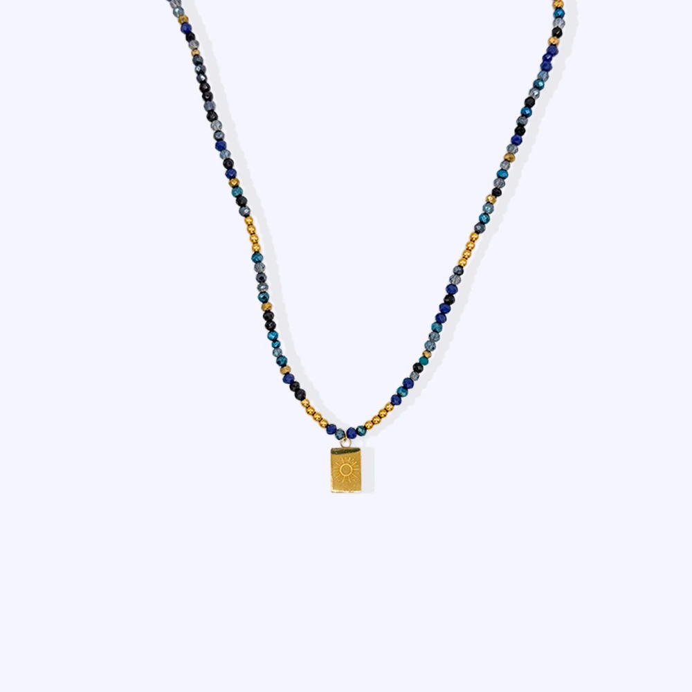 Le collier Athénais mêle harmonieusement des perles en verre et en acier inoxydable, sublimées par un délicat pendentif. ✨