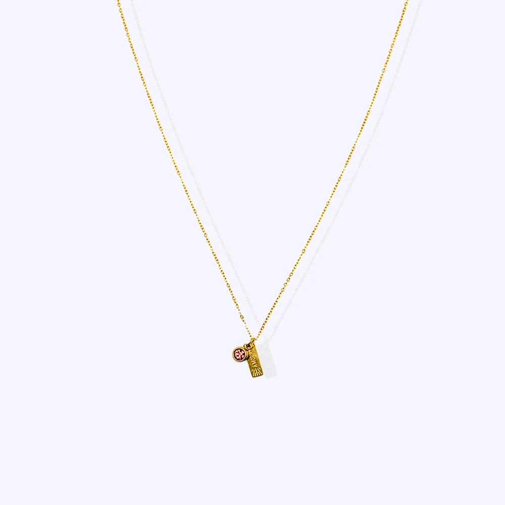 Collier Danae en acier inoxydable orné d’une pierre de zirconium rose. ✨